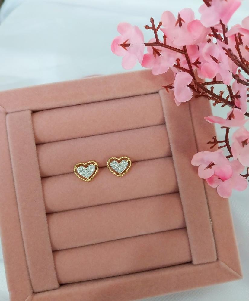Brinco coração pontilhado cravejado
