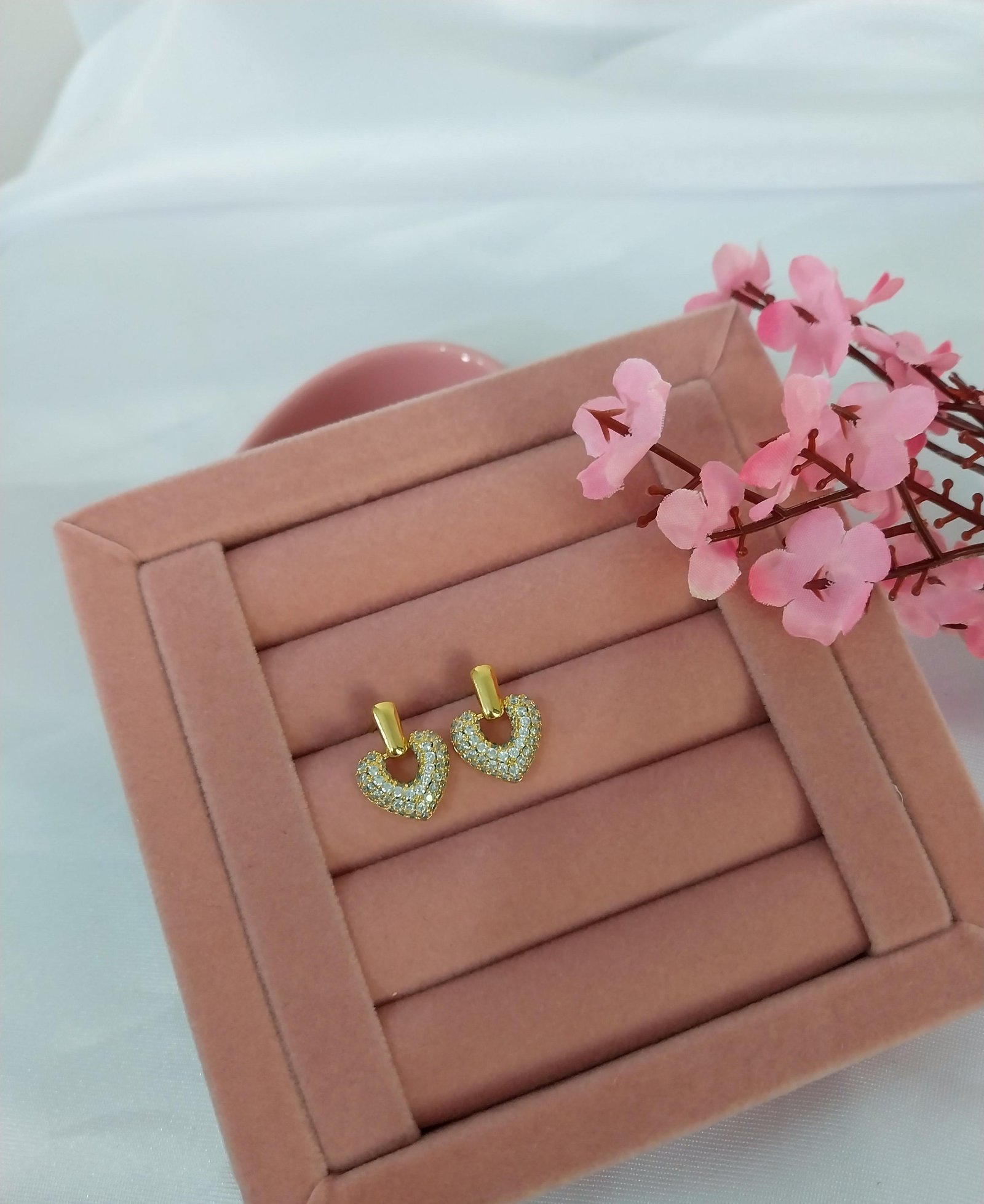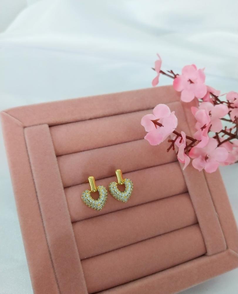 Brinco coração vazado cravejado