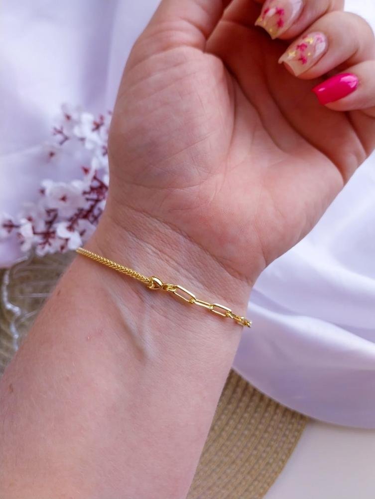 Pulseira 2 lados - meia correntaria, meia fio liso.