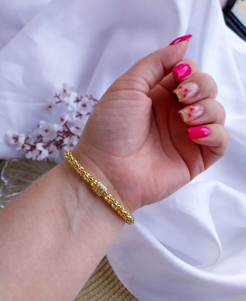 Pulseira fio grosso com detalhe cravejado.