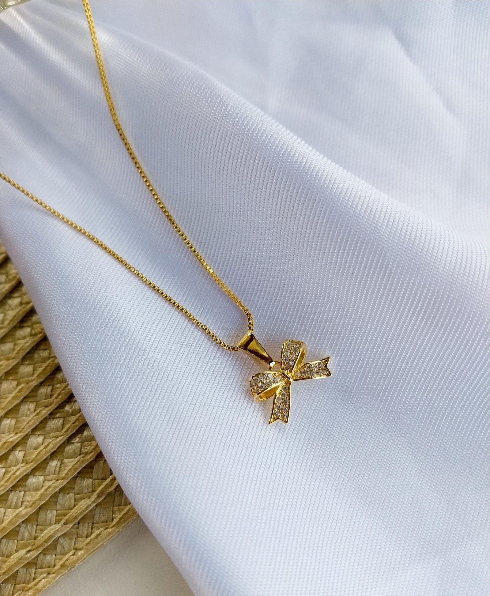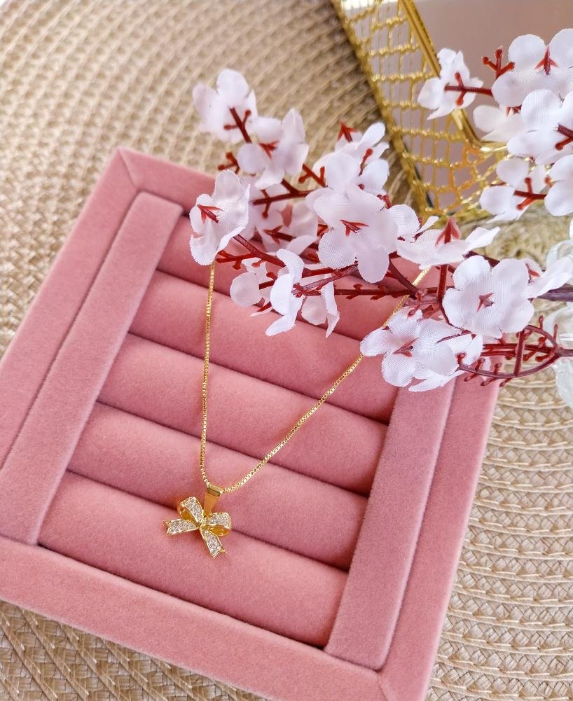 Colar laço cravejado.