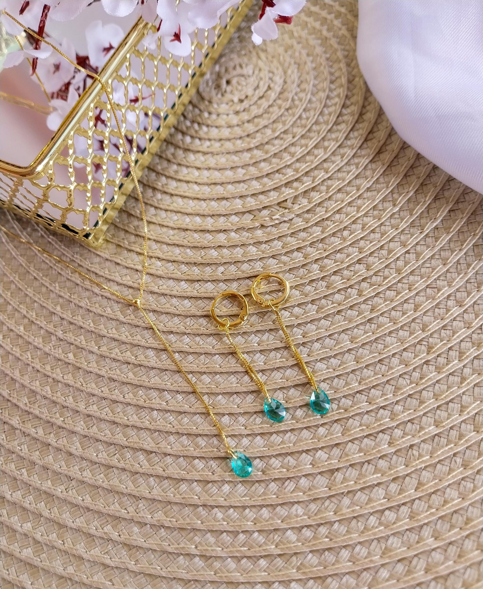 Conjunto gravatinha gota aqua.