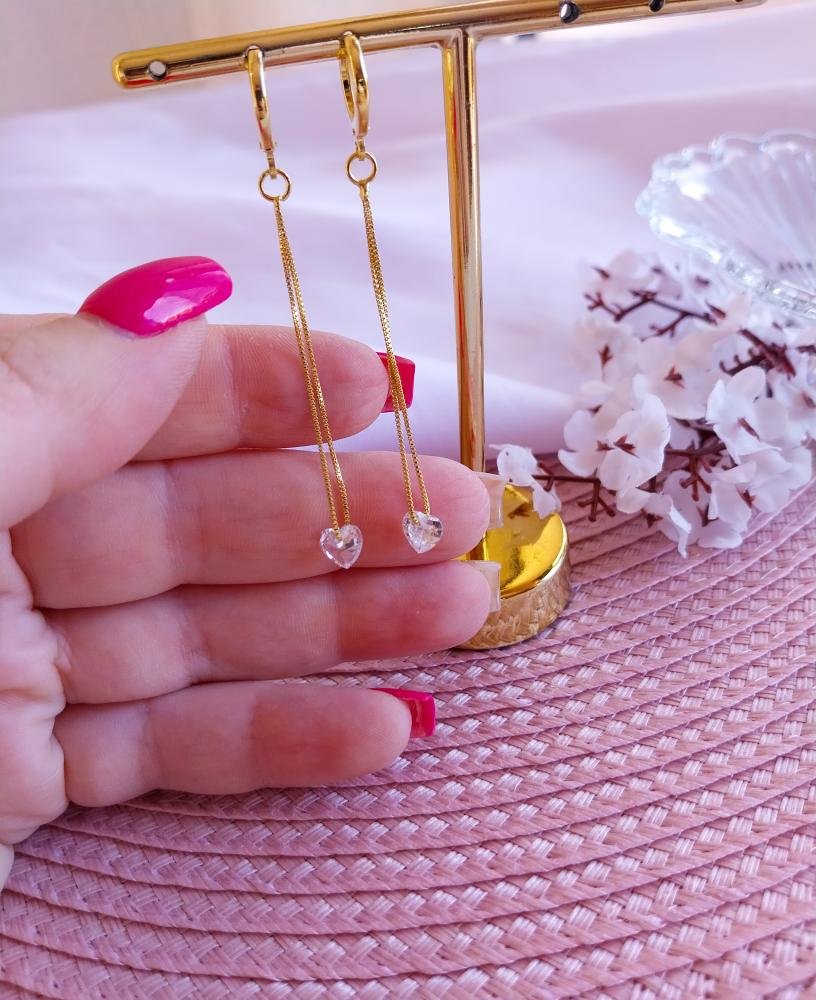 Argola fio coração zircônia.