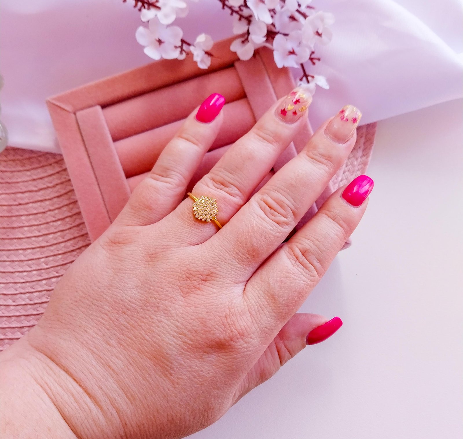 Anel chuveirinho hexagonal cravejado cristal.