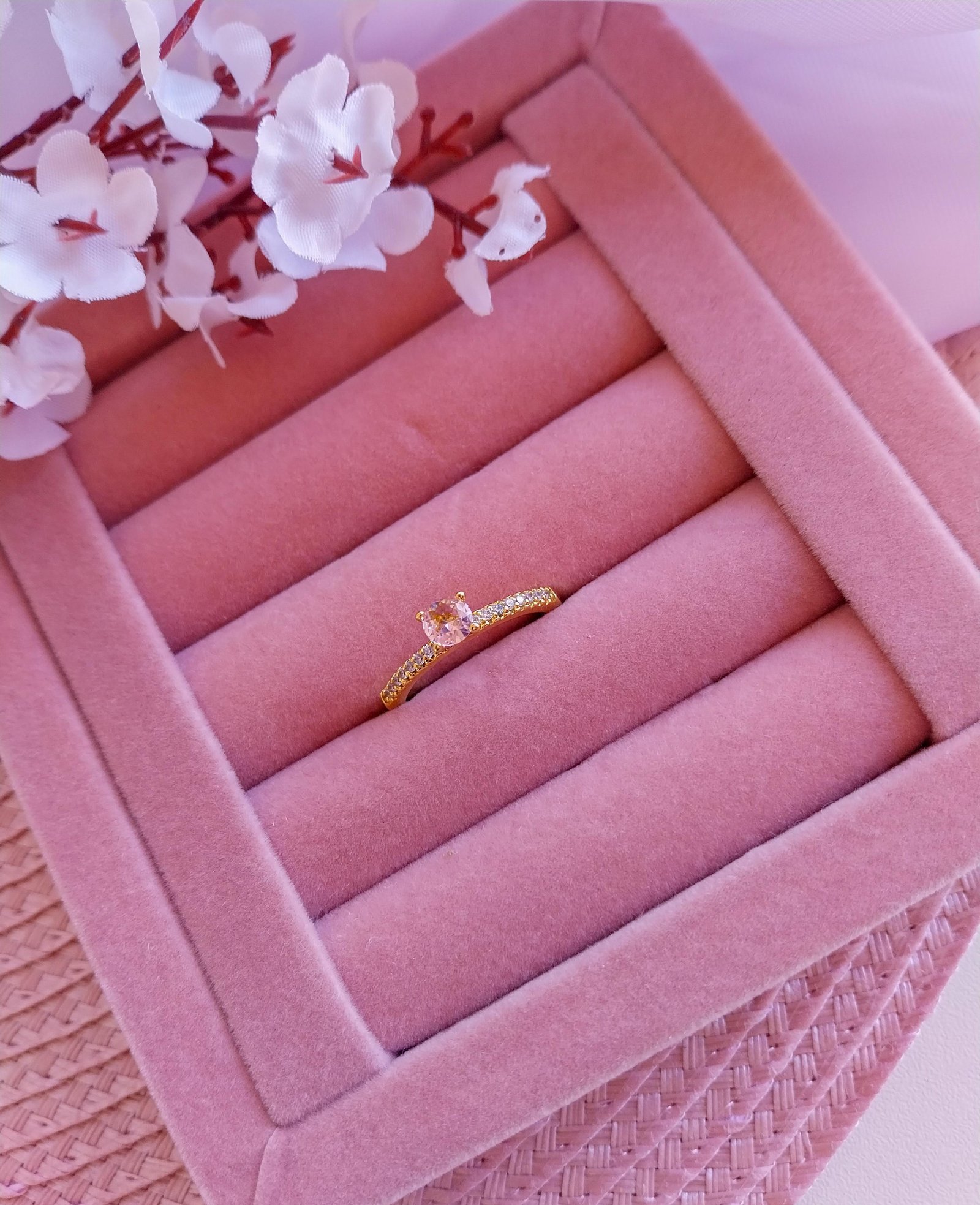 Anel Solitário Rosa