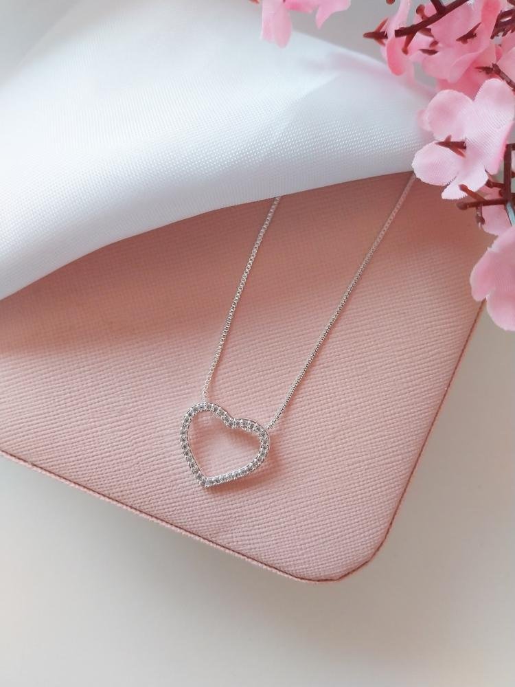 Colar Coração Vazado Cravejado